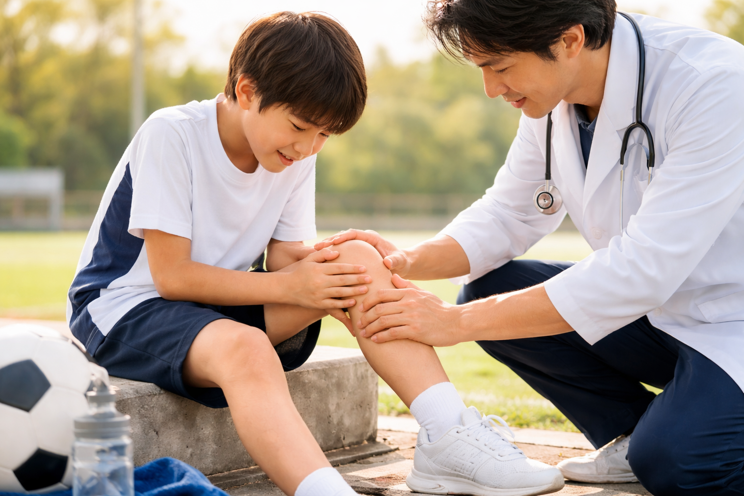 オスグッド病は、成長期の子どもに多い膝の痛みで、